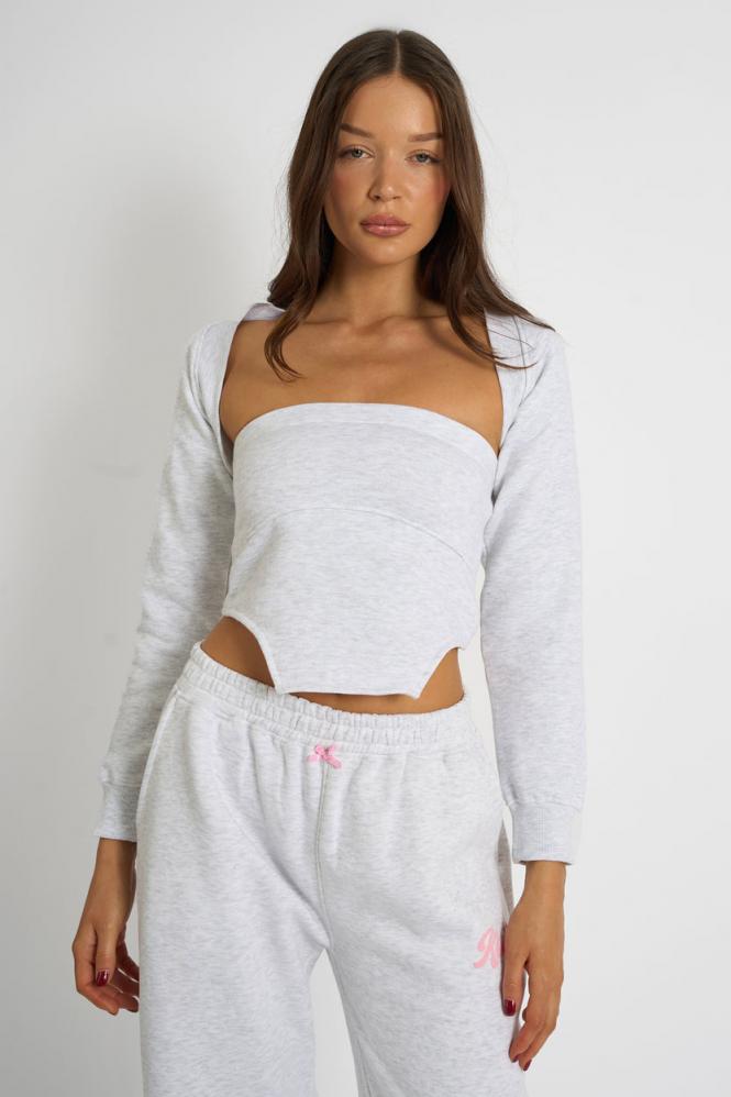 Kaiia TOPS | WOMENS Kaiia Bandeau Crop Top & Bolero Light Grey Marl